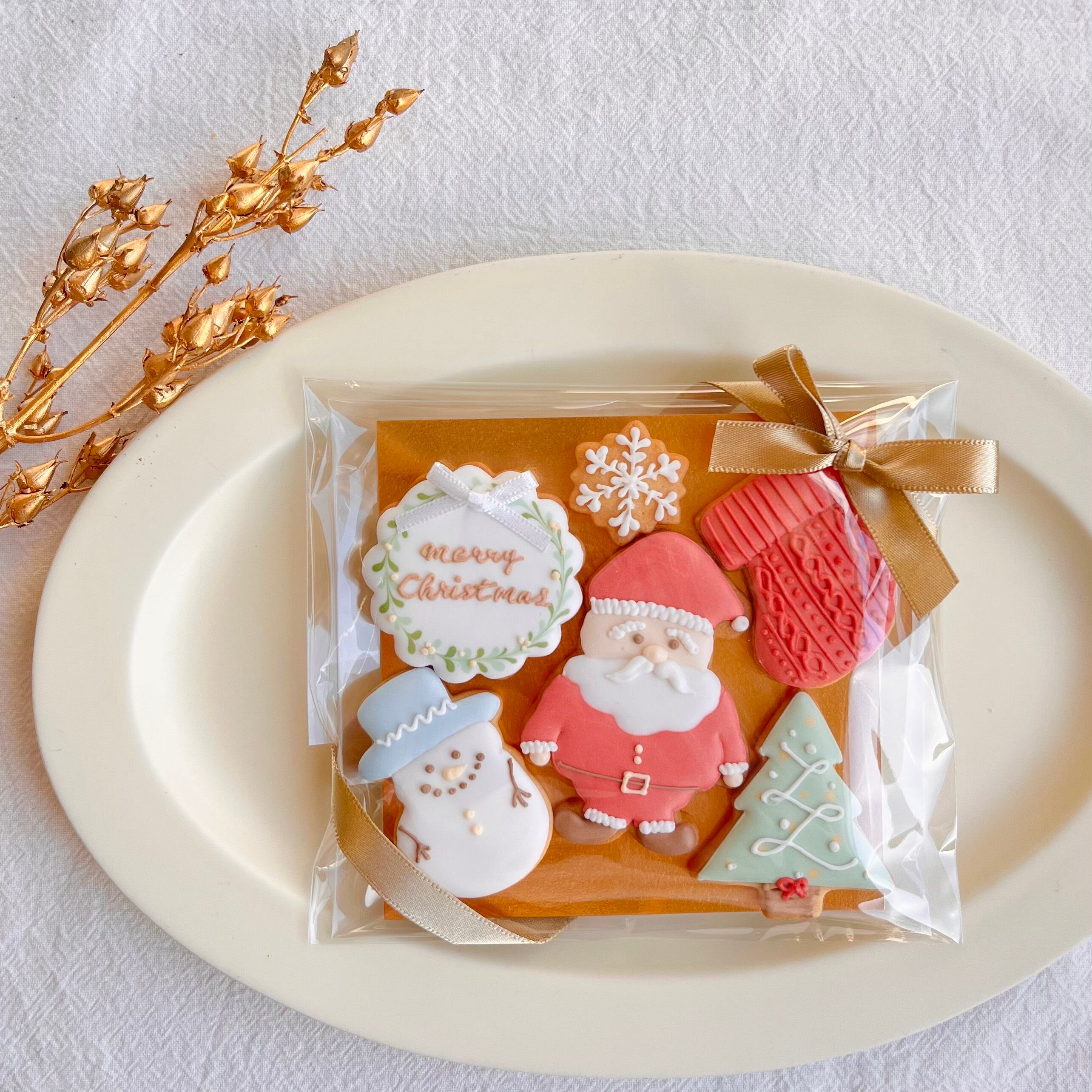 サンタをはじめ、小さめで可愛らしいアイシングクッキーを詰め合わせました。
