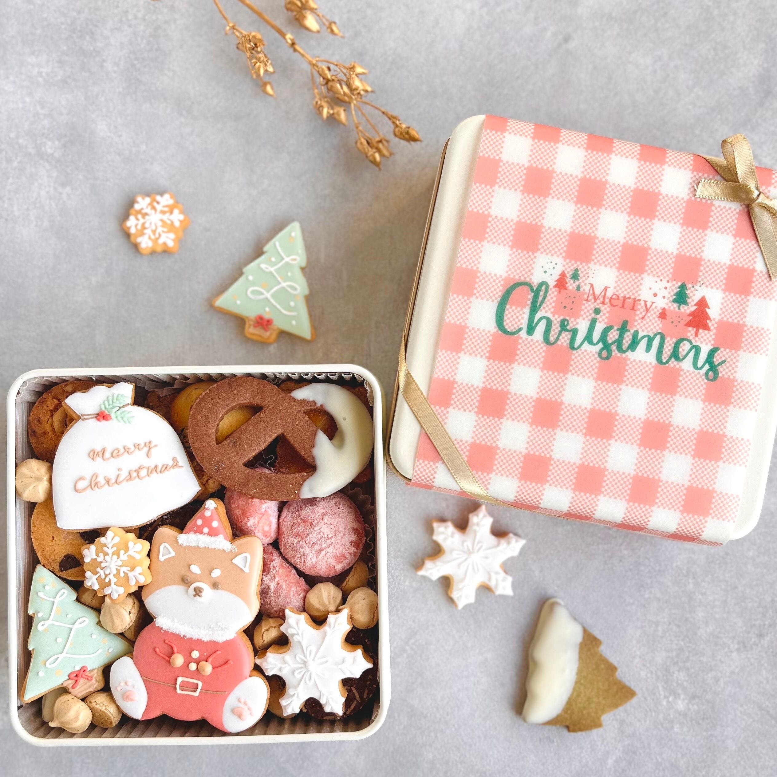 ふたを開けると、柴犬サンタのアイシングクッキーがお出迎え。