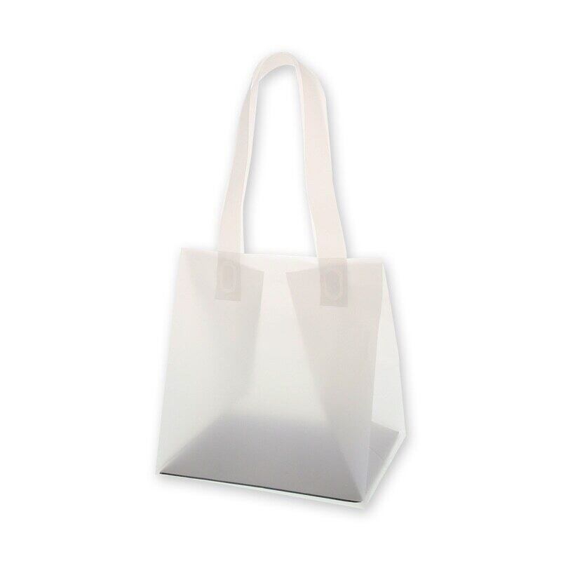 プレゼント用にも、持ち運び用にも便利な半透明の手提げポリバッグです。